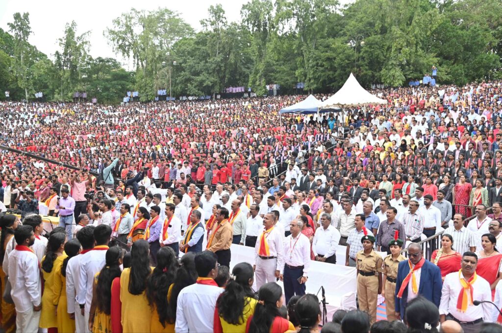 ಕವಿಗೋಷ್ಠಿಗೂ ಮುನ್ನ ಬಯಲು ರಂಗಮಂದಿರದಲ್ಲಿ ಸೇರಿದ್ದ ಸಹಸ್ರಾರು ಮಂದಿ ಯುವ ಮನಸ್ಸುಗಳು ಸೇರಿ ನಾಡಗೀತೆ ನೂರರ ಸಂಭ್ರಮದ ಅಂಗವಾಗಿ ಸಾಮೂಹಿಕವಾಗಿ ನಾಡಗೀತೆಯನ್ನು ಹಾಡುವ ಮೂಲಕ ದಾಖಲೆ ಬರೆದರು. ಆ ಮೂಲಕ ಸಾವಿರಾರು ಮಂದಿ ಒಮ್ಮೆಲೆ ನಾಡಗೀತೆ ಹಾಡಿ ಗಮನ ಸೆಳೆದರು.