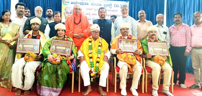 ಮೈಸೂರು: ಮಾಜಿ ಸಚಿವರು ಮತ್ತು ಭಾರತ್ ಸ್ಕೌಟ್ಸ್ ಅಂಡ್ ಗೈಡ್ಸ್ ಆಯುಕ್ತ ಪಿಜಿಆರ್ ಸಿಂಧ್ಯಾ, ಪತ್ರಕರ್ತ ರಮೆಶ್ ಉತ್ತಪ್ಪ, ವೈದ್ಯವಾರ್ತಾ ಪ್ರಕಾಶನದ ನಿರ್ದೇಶಕ ಶ್ರೀನಿವಾಸ ಬಹಾದ್ದೂರ್, ಚುಟುಕು ಜಾಹ್ನವಿ ಸೀತಾಲಕ್ಷ್ಮಿ ವರ್ಮ ಅವರನ್ನು ಮತ್ತು ಸನ್ಮಾನಕ್ಕೆ ಗೈರಾಗಿದ್ದ ಹಾಸನ ಜಿಲ್ಲೆ ಅಪರ ಜಿಲ್ಲಾಧಿಕಾರಿ ವಿ.ಮಂಜುನಾಥ್ ಪರವಾಗಿ ಅವರ ಕುಟುಂಬದವರಿಗೆ ಧ್ವನಿಕೊಟ್ಟ ಧಣಿ ಪ್ರಶಸ್ತಿ ನೀಡಿ ಗೌರವಿಸಲಾಯಿತು.