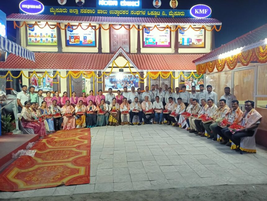 ಮೈಮುಲ್ ನಿರ್ದೇಶಕಿ ಲೀಲಾ ಬಿ.ಕೆ.ನಾಗರಾಜ್ ಮಾತನಾಡಿ, ನಾಡಿನ ಸಮಸ್ತರಿಗೆ ನವರಾತ್ರಿ ದಸರಾ ಹಬ್ಬದ ಶುಭಾಶಯಗಳು. ಈ ಬಾರಿ ದಸರಾ ಅಂಗವಾಗಿ ಮಳಿಗೆ ಮಾತ್ರವಲ್ಲದೆ ದೊಡ್ಟ ಸ್ತಬ್ಧಚಿತ್ರದ ಮೂಲಕ ಹೈನೋದ್ಯಮದಲ್ಲಿ ಸರ್ಕಾರದ ಸಂಪೂರ್ಣ ಮಾಹಿತಿ ನೀಡಲಾಗುತ್ತಿದೆ. ಹೆಚ್ಚಿನ ಮಂದಿ ಆಗಮಿಸಿ ಇದರ ಪ್ರಯೋಜನ ಪಡೆದುಕೊಳ್ಳಿ ಎಂದರು.