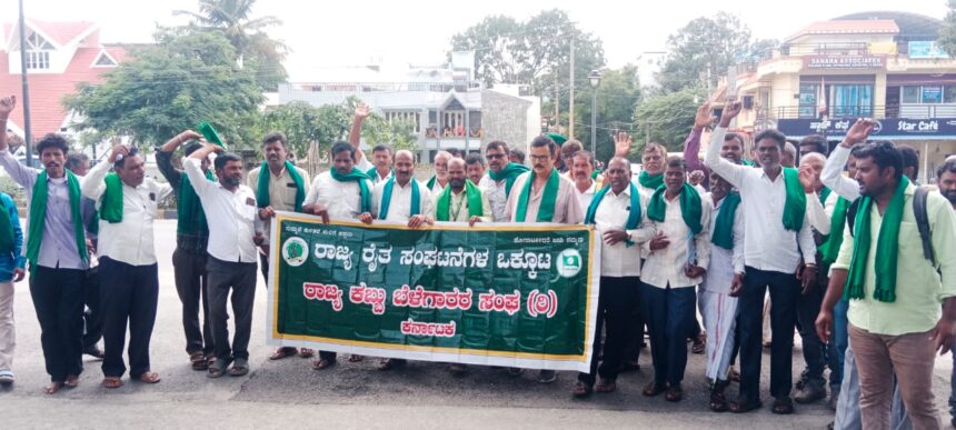 ರೈತರ ಬೆಳೆ ಸಾಲ ಪರಿಹಾರ ಹೆಚ್ಚಳಕ್ಕೆ ಆಗ್ರಹಿಸಿ ಪ್ರತಿಭಟನೆ