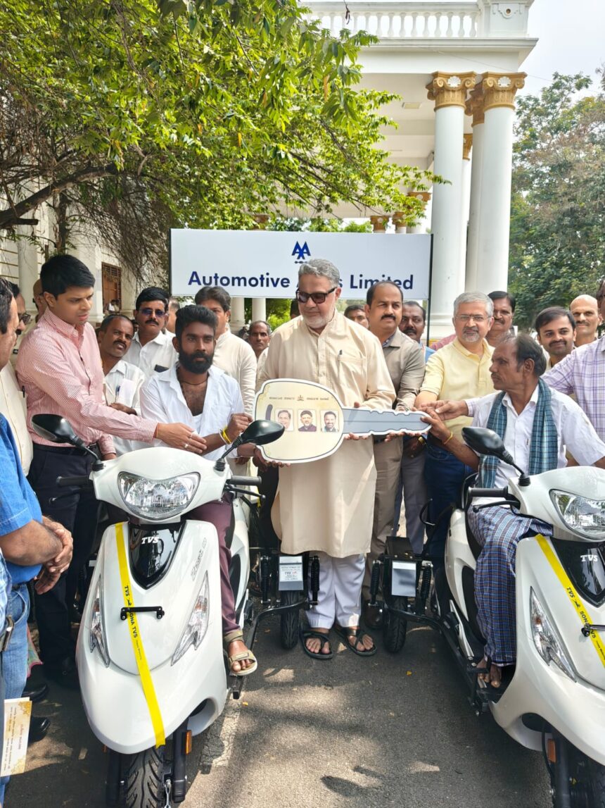 ಮೈಸೂರು, ಫೆ.27(ಕರ್ನಾಟಕ ವಾರ್ತೆ):- ಇಂದು ಜಿಲ್ಲಾಧಿಕಾರಿಗಳ ಕಛೇರಿಯ ಆವರಣದಲ್ಲಿ ಜಿಲ್ಲಾಡಳಿತ ಮತ್ತು ಜಿಲ್ಲಾ ಪಂಚಾಯತ್, ಕಾರ್ಮಿಕ ಇಲಾಖೆ, ಕಾರ್ಖಾನೆಗಳು, ಬಾಯ್ಲರುಗಳು, ಕೈಗಾರಿಕಾ ಸುರಕ್ಷತೆ ಮತ್ತು ಸ್ವಾಸ್ಥ್ಯ ಇಲಾಖೆ, ವಿಕಲಚೇತನರ ಹಾಗೂ ಹಿರಿಯ ನಾಗರೀಕರ ಸಬಲೀಕರಣ ಇಲಾಖೆ ಹಾಗೂ ವಿವಿಧ ಉದ್ಯೋಗದಾತರ ಸಹಯೋಗದಲ್ಲಿ ಕಾರ್ಪೊರೇಶನ್ ಸೋಷಿಯಲ್ ರೆಸ್ಪಾನ್ಸಿಬಿಲಿಟಿ ಯೋಜನೆ (CSR fund) ಅಡಿಯಲ್ಲಿ ಮೈಸೂರು ಜಿಲ್ಲೆಯ ವಿಶೇಷ ಚೇತನರಿಗೆ ವಿವಿಧ ಉದ್ಯೋಗದಾತರ ಪ್ರಯೋಜಿತ 22 ಯಾಂತ್ರಿಕ ತ್ರಿಚಕ್ರ ವಾಹನಗಳನ್ನು ವಿತರಣೆ ಮಾಡಲಾಯಿತು.