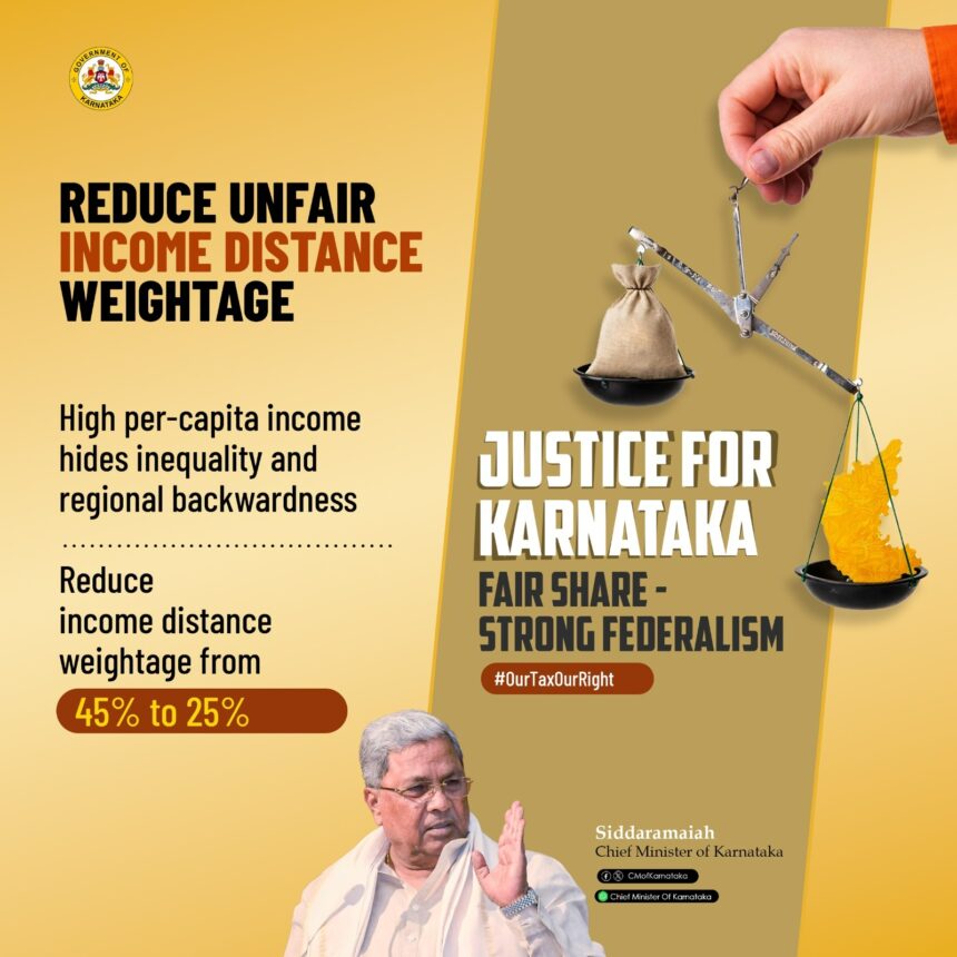 ಕರ್ನಾಟಕದ ಸಮಸ್ತ ಜನತೆಯ ಪರವಾಗಿ ರಾಜ್ಯ ಸರ್ಕಾರವು 16ನೇ ಹಣಕಾಸು ಆಯೋಗದ ಮುಂದೆ ಕೆಲವು ನ್ಯಾಯ ಸಮ್ಮತ ಮತ್ತು ಸಂವಿಧಾನಾತ್ಮಕ ಬೇಡಿಕೆಗಳನ್ನು ಮಂಡಿಸಿದೆ. ಈ ಹಿನ್ನೆಲೆಯಲ್ಲಿ ರಾಜ್ಯದ ನ್ಯಾಯಯುತ ತೆರಿಗೆ ಪಾಲು, ಪ್ರಾಕೃತಿಕ ವಿಕೋಪ ಪರಿಹಾರ ನಿಧಿ, ವಿಶೇಷ ಅನುದಾನ ನೀಡುವುದು ಸೇರಿದಂತೆ ಸಮಾನ ಹಂಚಿಕೆಯ ಮೂಲಕ ಸದೃಢ ಒಕ್ಕೂಟಕ್ಕೆ ಮನ್ನಣೆ ನೀಡಬೇಕು ಎನ್ನುವುದು ಕರ್ನಾಟಕದ ಒತ್ತಾಯವಾಗಿದೆ.