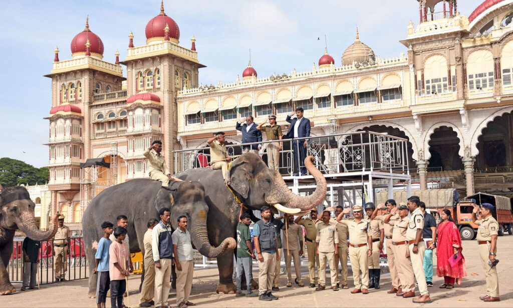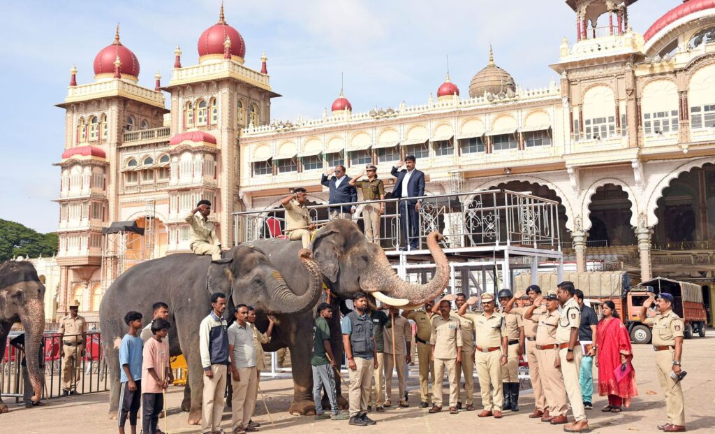 ಮೈಸೂರು ವಲಯದ ಮುಖ್ಯ ಅರಣ್ಯ ಸಂರಕ್ಷಣಾಧಿಕಾರಿ ರವಿಶಂಕರ್ ಮಾತನಾಡಿ, ‘ಈ ಬಾರಿಯ ದಸರಾ ಆಚರಣೆಗೆಂದು ಮಾವುತರು ಹಾಗೂ ಕಾವಾಡಿಗಳು ಆನೆಗಳಿಗೆ 60 ದಿನಗಳ ತರಬೇತಿ ನೀಡಿದ್ದಾರೆ. ಎಲ್ಲಾ ಆನೆಗಳು ಆರೋಗ್ಯವಾಗಿ, ಚೆನ್ನಾಗಿ ಇವೆ. ಅಂತಿಮ ಹಂತದ ರಿಹರ್ಸಲ್ನಲ್ಲಿ ಗಜಪಡೆ ಉತ್ತಮವಾಗಿ ಸ್ಪಂದಿಸಿವೆ. ಎಲ್ಲ ರೀತಿಯ ಸಿದ್ಧತೆ ನಡೆದಿದ್ದು, ಜಂಬೂಸವಾರಿಯ ದಿನ ಗಜಪಡೆಯ ಬಳಿ ಯಾರೂ ಹೋಗಬಾರದು ಹಾಗೂ ಶಬ್ದ ಮಾಡಬಾರದು ಮನವಿ ಮಾಡಿದರು.