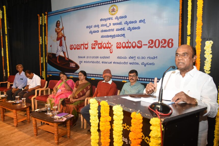 ಮೈಸೂರು,ಜ.21 (ಕರ್ನಾಟಕ ವಾರ್ತೆ):- ಅಂಬಿಗರ ಚೌಡಯ್ಯ ಅವರ ಹಲವಾರು ವಚನಗಳನ್ನು ರಚಿಸಿದ್ದು, ಅವರ ವಚನಗಳ ತತ್ವಗಳನ್ನು ಪ್ರತಿಯೊಬ್ಬರು ತಮ್ಮ ಜೀವನದಲ್ಲಿ ಅಳವಡಿಸಿಕೊಳ್ಳಬೇಕು ಎಂದು ವಿಧಾನ ಪರಿಷತ್ ಸದಸ್ಯರಾದ ಡಾ.ಡಿ.ತಿಮ್ಮಯ್ಯ ಅವರು ತಿಳಿಸಿದರು.