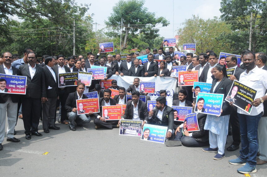 ಪ್ರತಿಭಟನೆಯಲ್ಲಿ ಸಂಘದ ಉಪಾಧ್ಯಕ್ಷ ಚಂದ್ರಶೇಖರ್, ಪ್ರಧಾನ ಕಾರ್ಯದರ್ಶಿ ಚರಣ್ರಾಜ್ಕುಮಾರ್, ಸುದೀರ್, ಪುನೀತ್ ಸೇರಿ ನೂರಾರು ವಕೀಲರು ಭಾಗವಹಿಸಿದ್ದರು.