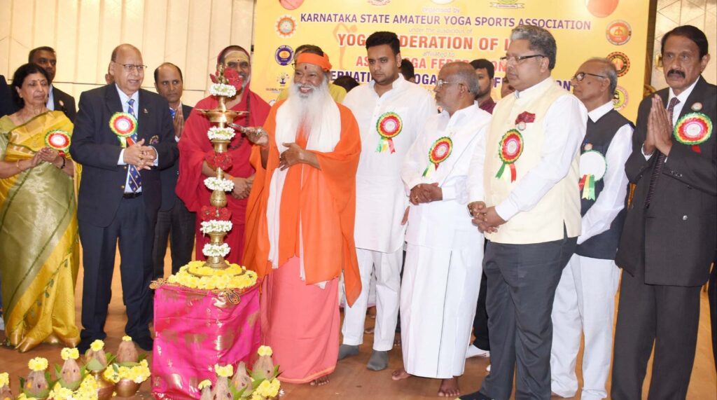 ಮೈಸೂರು: ಮೈಸೂರಿನ ಶ್ರೀ ಗಣಪತಿ ಸಚ್ಚಿದಾನಂದ ಆಶ್ರಮದ ನಾದಮಂಟಪದಲ್ಲಿ ಯೋಗ ಫೆಡರೇಷನ್ ಆಫ್ ಇಂಡಿಯಾ ಸಂಸ್ಥೆ ೫೦ನೇ ಸುವರ್ಣ ಸಂಭ್ರಮ ಹಾಗೂ ಕರ್ನಾಟಕ ರಾಜ್ಯ ಅಮೆಚೂರ್ ಯೋಗ ಕ್ರೀಡಾ ಸಂಘ, ಗ್ಲೋಬಲ್ ಯೋಗ ಫೋರಮ್, ಮೈಸೂರು ಜಿಲ್ಲಾ ಯೋಗ ಕ್ರೀಡಾ ಫೌಂಡೇಷನ್ ಹಾಗೂ ಮೈಸೂರು ವಿವೇಕಾನಂದ ಯೋಗ ಶಿಕ್ಷಣ ಮತ್ತು ಸಂಶೋಧನಾ ಸಂಸ್ಥೆಗಳ ಸಹಯೋಗದಲ್ಲಿ ಇಂದಿನಿಂದ ಆರಂಭವಾದ ಸೀನಿಯರ್ ನ್ಯಾಷನಲ್ ಯೋಗ ಸ್ಪೋರ್ಟ್ಸ್ ಚಾಂಪಿಯನ್ಶಿಪ್ಗೆ ಶ್ರೀ ಗಣಪತಿ ಸಚ್ಚಿದಾನಂದ ಸ್ವಾಮೀಜಿ ಚಾಲನೆ ನೀಡಿದರು.